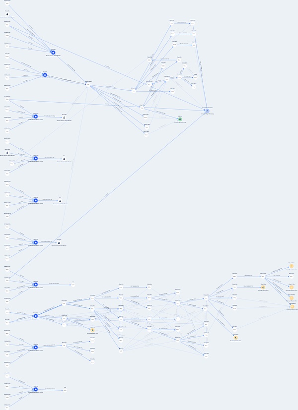 这一部分目前统计涉案金额为9896 ETH,这一部分会通过多个归集地址进行归集。资金链路图如下所示: