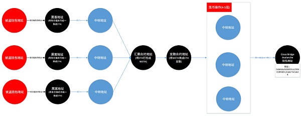 1、通过合约进行发散后利用Avalanche跨链洗钱