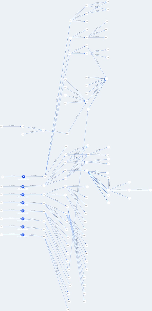 BTC链涉案地址分多个汇聚地址,汇聚地址后续无资金交叉,存在大量沉淀地址。