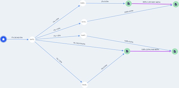 两个汇聚合约通过同意手续费来源确认,部分没有交易行为地址隐藏。手续费路径如下: