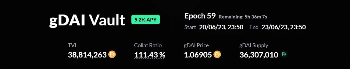 Gains 提供了一个具有多种资产类别和高杠杆的交易平台。该平台利用 gDAI 金库作为交易对手,其中 DAI 的数量不断变化。