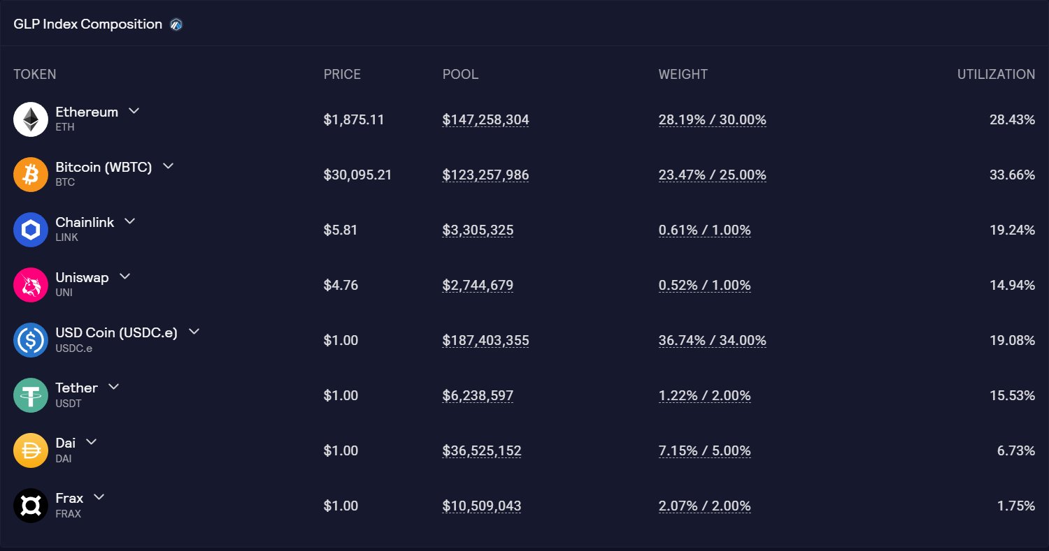 GMX 允许用户对 GLP 池进行交易,提供零滑点的现货和保证金交易。GLP 是 GMX 的资金池,包括 BTC、ETH、UNI、LINK 和 4 种稳定币。该模型的巨大优势在于其可组合性;一些协议开始创建利用 GLP 及其收益来产生额外收益的投资产品。