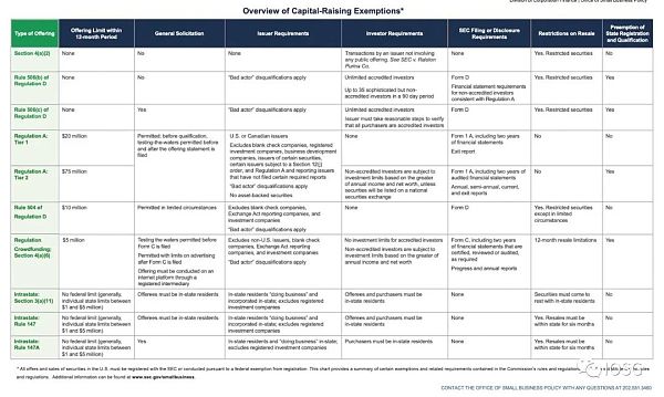 Source: www.sec.gov/education/smallbusiness/exemptofferings/exemptofferingschart
