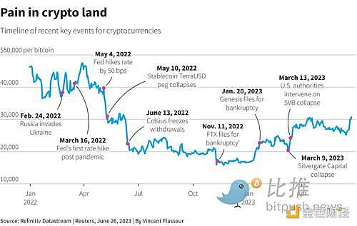 比特币上周 上涨超过 15% ,自 4 月份以来首次突破 30,000 美元,这是自 3 月份 以来表现最好的一周。2022 年主要加密货币公司发生一系列倒闭事件,导致投资者蒙受损失后,今年该行业遭受了投资者信心丧失和监管审查加强的双重打击,行业将贝莱德的申请视为华尔街正在转向比特币的标志,许多观察家推测,这可能会刺激加密货币领域出现新的牛市。 主要金融机构的参与为加密货币提供了一定程度的合法性和可信度,可能会吸引新一波的投资者,流动性的增加可能会推高需求,进而推高这些数字资产的价格。