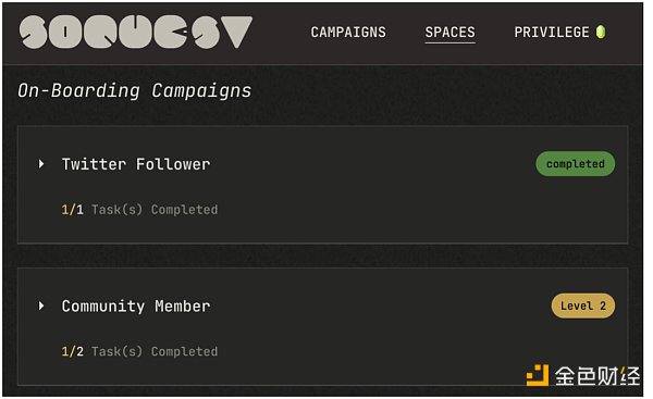 因此,SoQuest致力于构建项目和用户之间的长期关联关系。用户加入社区后,应该能够参与很多活动,例如关注项目的最新动态、进入社群、进行有目的的链上互动,在项目中逐步升级,从小白成为OG。因此,SoQuest在项目Space的组织上投入了更多心力。