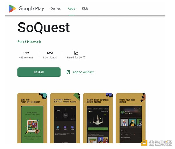 在流量深耕方面,SoQuest发展移动端,并让用户在内部留存转化。在接下来的Quest竞争中,有多少用户流过并不重要,有多少用户留下更为重要。在Web3中,移动端用户一直占据60%以上的份额。SoQuest于今年4月发布了App,已经登陆AppStore及Google Play,面向全网用户提供下载,目前已获得超过10万的下载量。在SoQuest App上,支持众多Web2的登录方式,目的是吸引更多Web2新用户。除了已经覆盖的Twitter、Telegram、Discord等渠道,SoQuest将通过Facebook、Youtube、TikTok等更多渠道获取新用户。