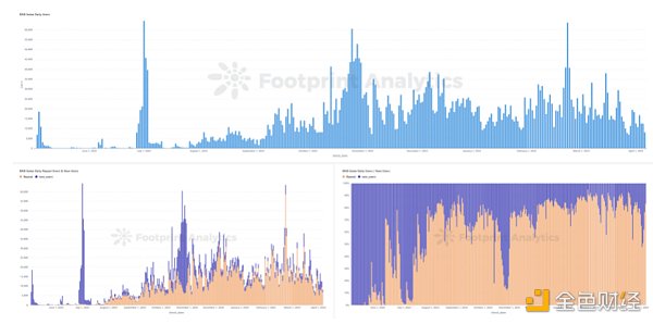 作为该领域的OG级平台,Galxe 在发展过程中始终保持着“虹吸效应”。就像Opensea一样,早期的发展积累了大量的用户,使得即使在市场整体热度下降的情况下,Galxe 仍旧能有所斩获。虽然用户增长放缓,但 Galxe 仍然具有明显的优势,体量大是其中之一。近期行情向好,市场活跃,Galxe 仍旧能凭借其优势,保持着较高的增速。例如下图中 Galxe 的新增用户比例超过了50%。因此,从这个趋势来看,以 Galxe 为代表的平台中期内依然将在流量方面领跑赛道。