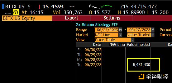根据彭博社的数据, BITX上线 15 分钟内交易量约 50 万美元, 首日成交量约为 550万美元,使其成为今年推出的 ETF 首日最成功的交易之一。
