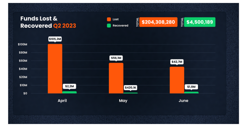 2023年第二季度DeFi黑客攻击和诈骗相关损失超过2.04亿美元