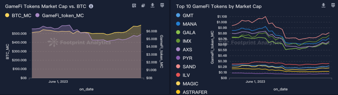 链上数据显示,6月18-24日期间链游板块玩家提升9.98%,总数达127.56万,七日内活跃玩家数达85.41万;新增游戏49款,链游板块总市值上涨14.7,达5950万美元,TOP10链游市值均有不同程度上涨。