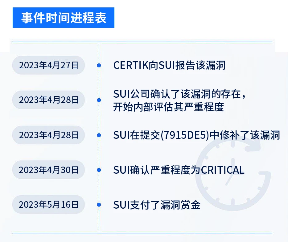 发现该漏洞后,CertiK 通过 Sui 的漏洞赏金计划向 Sui 进行了报告。Sui 也第一时间进行了有效回应,确认了该漏洞的严重性,并在主网启动前积极采取了相应措施对问题进行了修复。除了修复此特定的漏洞外,Sui 还实施了预防性的缓解措施,以减少该漏洞可能造成的潜在损害。