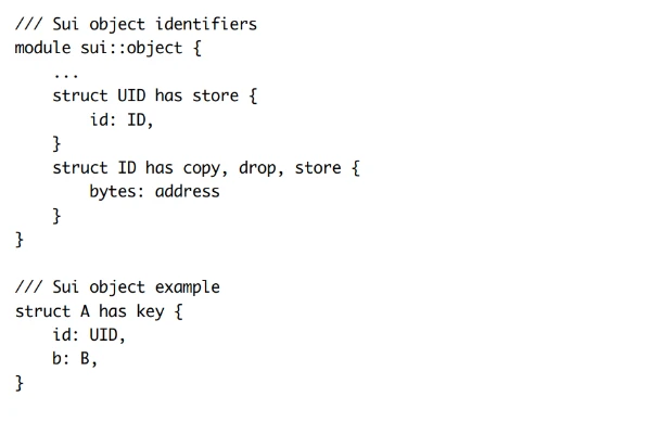 与原来的 Move 设计不同,Sui 的区块链平台引入了一个独特的以“目标”为中心的全局存储模型。这个模型的一个显著特点是:任何具有 key 属性(作为索引上链存储)的数据结构必须以 ID 类型作为该结构的第一个字段。ID 字段不可改变,且不能转移到其他目标上,因为每个对象必须有一个全局唯一的 ID。为了确保这些特性,Sui 在抽象解释器上建立了一套自定义分析逻辑。