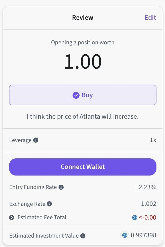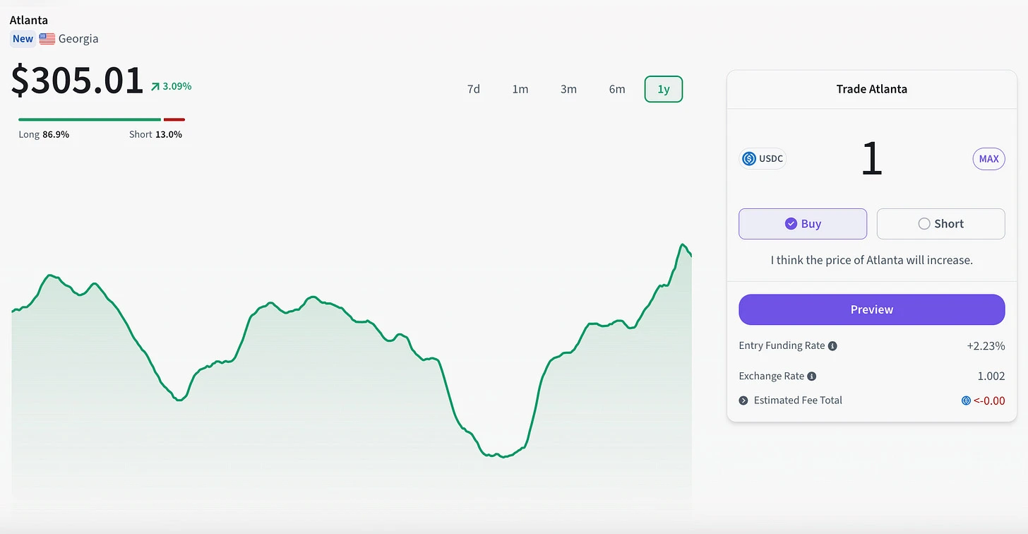 点击任何指数的“trade”按钮后,用户将进入该指数的交易页面。例如,这是我在亚特兰大的视图: