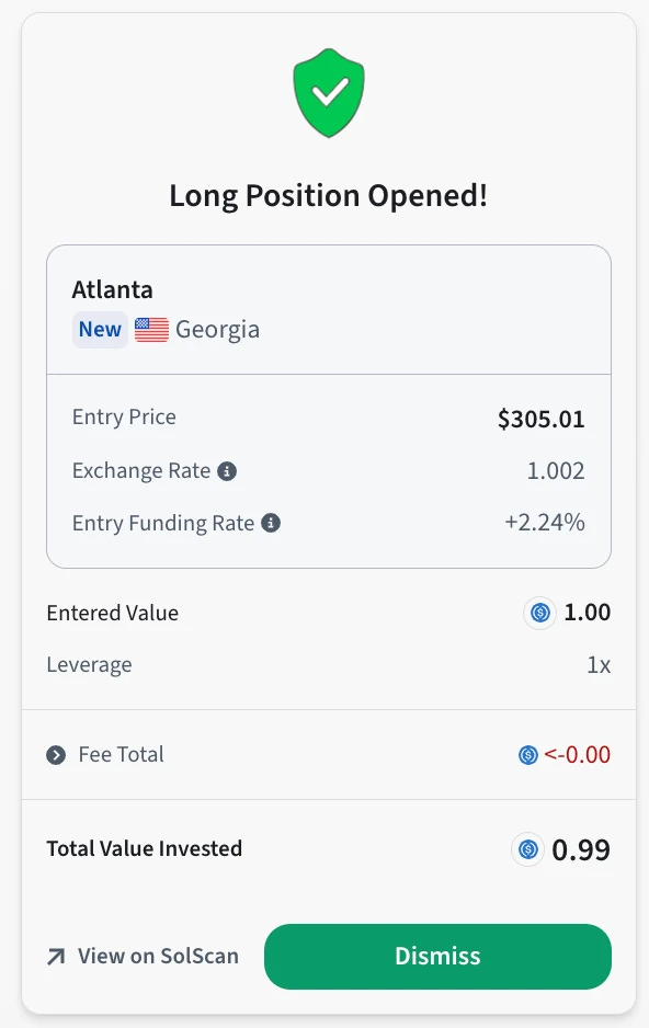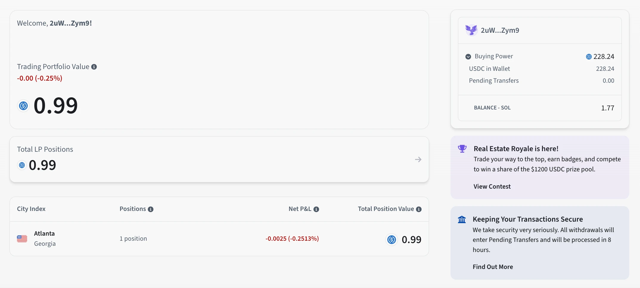 加密货币用户(尤其是交易者),可能对杠杆、多头/空头交易、流动性池等概念非常熟悉,因此他们很容易理解和使用 Parcl 的高级功能。通过基本和高级功能,交易者可以以极低的初始资金(仅需 1 USDC 加上几分钱的 SOL gas 费用)探索一整个新的资产类别。他们可以通过指数访问所有这些房地产市场及其收益,以及整个城市,以最小化单个站点的风险。