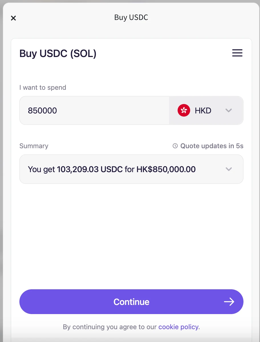 此功能由 MoonPay 提供支持,MoonPay 是一个 Web 3 支付网关,支持多种货币。用户需要进行电子邮件验证,然后输入个人详细信息。如姓名、出生日期、住址,最后输入付款详细信息(借记卡/信用卡)。完成后,他们可以轻松购买 USDC 而无需重新输入这些信息。