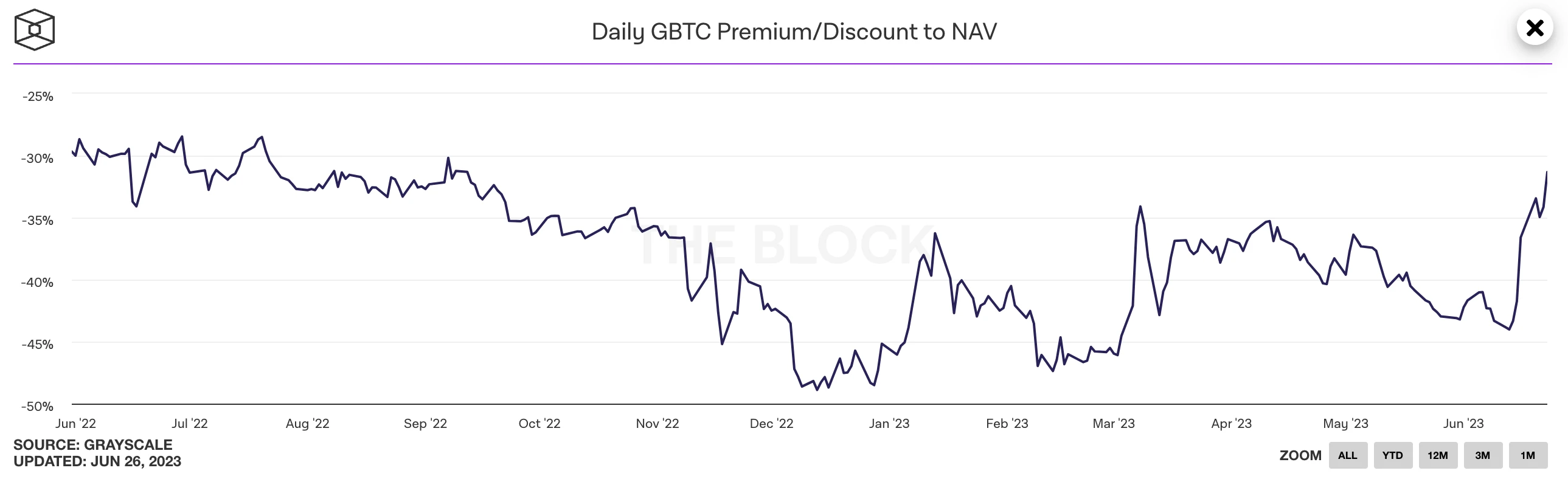 6 月 16 日,是 GBTC 本轮上涨的开始。