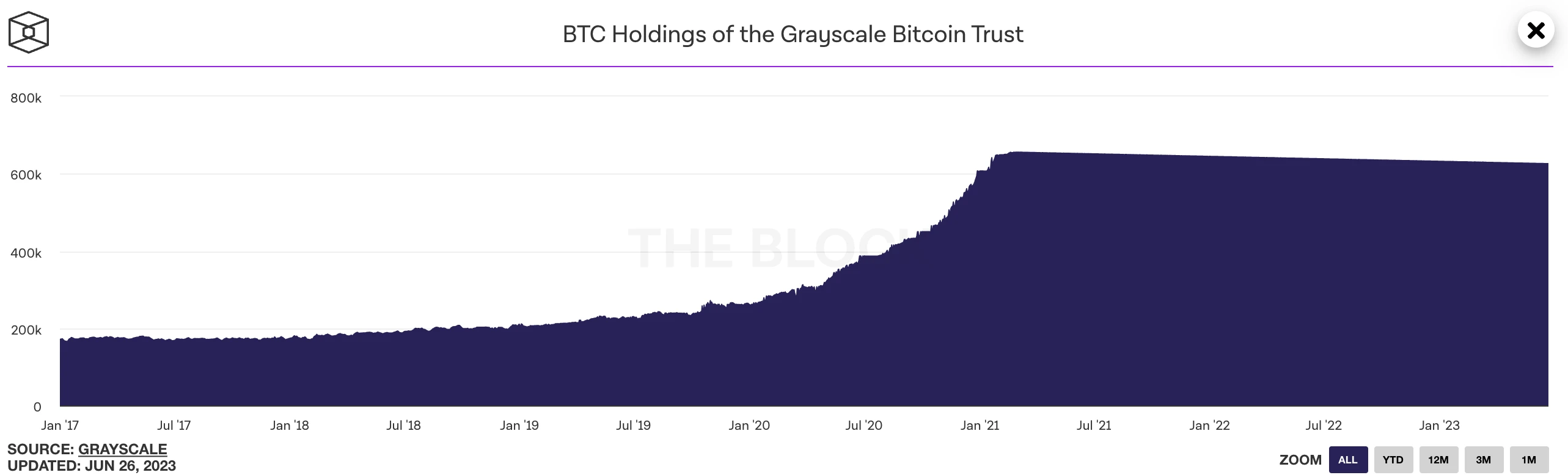 数据的全面回暖、ETF 的强烈预期,一切都让 GBTC 看上去在不断向好。但长远来看,其市场地位是否有望重回自己的全盛时刻,仍然存在着重重难关,投资者也不必对其抱持过高的期待。