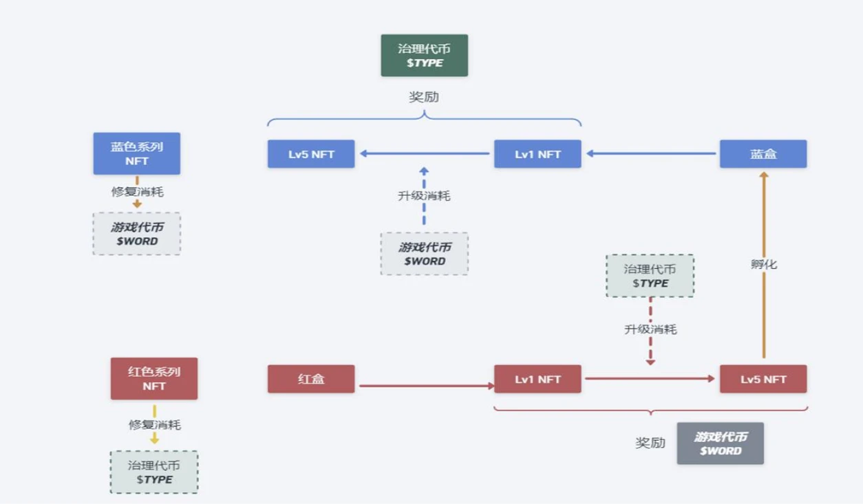 举一个单例:目前从二级市场购买一个盲盒大概是 80 USDT,每天能产出 21 个 $WORD,每个$WORD 目前 0.11 USDT。每天修复 NFT 需要花费 1.25 个 $TYPE,每个 $TYPE 目前 0.85 USDT。每天实际产生收益 1 USDT 左右,回本周期在 70 多天。当然,若币价上涨,回本周期还能进一步缩短。