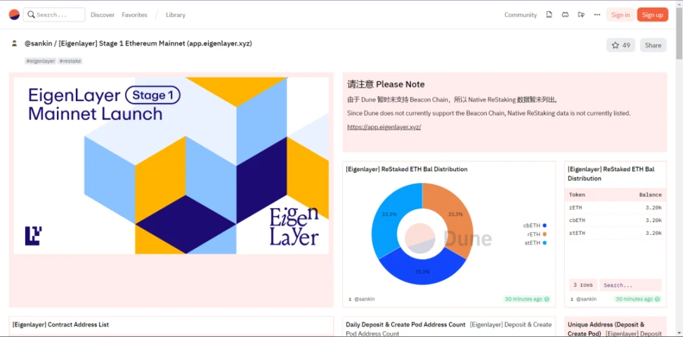 EigenLayer 是一个以太坊再质押协议,已经拿到了六千多万美元的融资,本身也是属于上面 LSDfi 的范畴,但是由于该项目被很多人极力看好,并认为是潜在的大毛,因此使用单独的一个数据看板去研究它,也是非常有必要的。