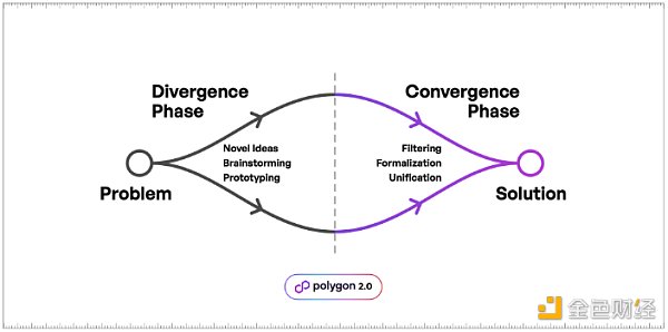 自 Polygon 成立以来,其开发人员和社区一直秉承实验精神。 我们积极鼓励构建下一代区块链基础设施的多种途径,而不是试图预测未来并押注于单一方法。 这与创造性解决问题的典型过程相一致,其中探索许多想法和方法的发散阶段之后是收敛阶段,其中这些想法和方法巩固并产生问题的解决方案。 鉴于区块链是一个年轻且非常有活力的行业,这种方法是一个显而易见的选择。
