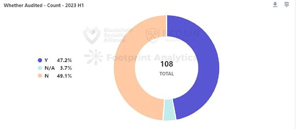 审计和未审计项目比例大致相当,在 108 个被攻击项目中,经过审计的项目为 51 个,未经审计的项目为 53 个,比例大致相当。该比例与 2022 年情况也大体一致。