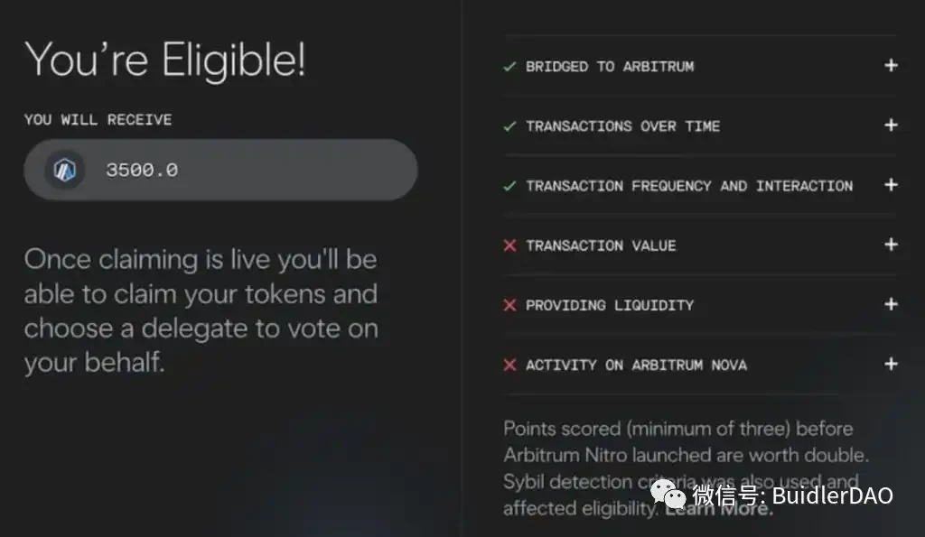 在区块链发展的早期,空投的选择条件不多,但发展到 Web3.0 阶段,很多项目都有了一定的进展之后再空投,于是可以对做成贡献的用户进行空投,还可以使用空投引导用户完成相关的任务。例如 Arbitrum 的空投设计。