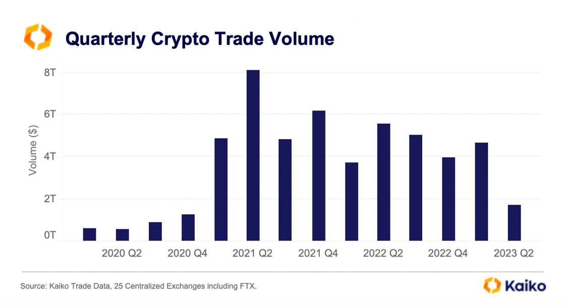 博链财经BroadChain获悉,7月3日,Kaiko Trade Date发布数据显示,季度