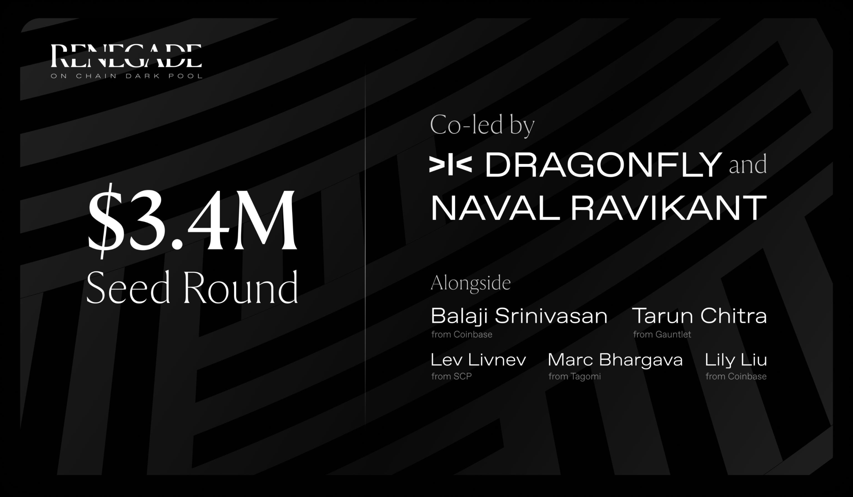 2 月 20 日消息,利用 ZK 暗池(dark pool)技术建立新型去中心化交易所的初创公司 Renegade 完成 340 万美元种子轮融资, Dragonfly Capital 和前 AngelList 首席执行官 Naval Ravikant 领投, Balaji Srinivasan 和 Lily Liu 、来自 Robot Ventures 的 Tarun Chitra 、来自 Tagomi 的 Marc Bhargava 和来自 Symbolic Capital Partners 的 Lev Livnev 等参投。