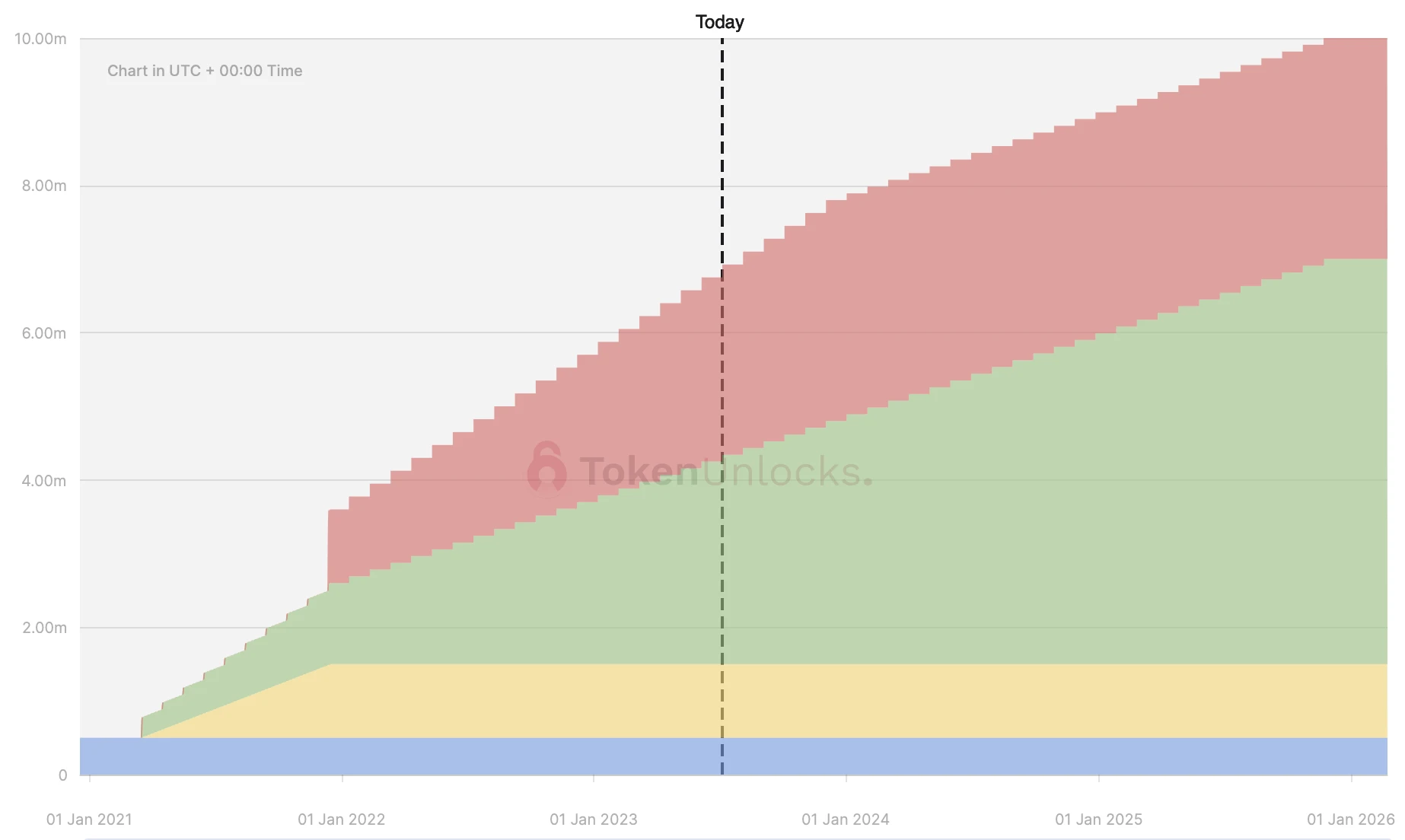 TORN 的解锁较为均匀,每月均会迎来一次解锁,且每次解锁数量大致相同。