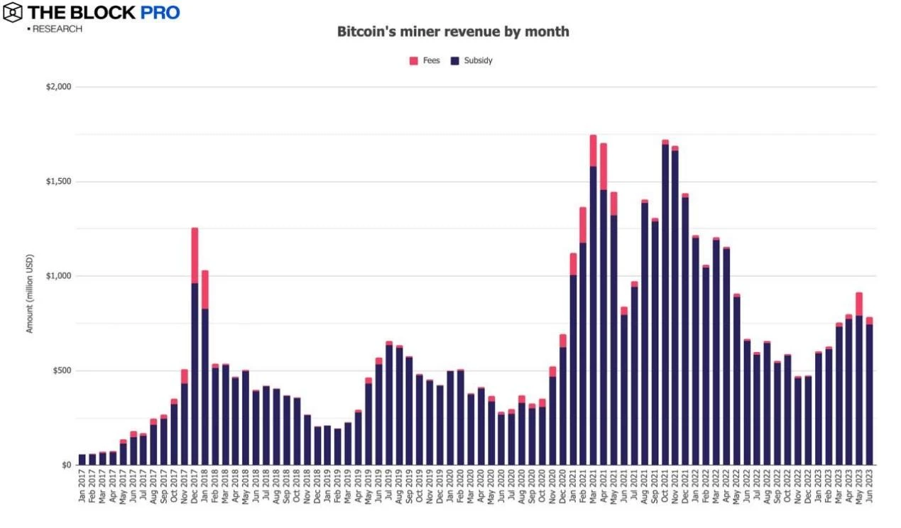 3、需要注意的是,比特币矿工收入在六月份出现下跌,降幅达到 14.5% ,降至 7.833 亿美元,同时以太坊质押收入也出现下降,六月跌幅为 24% ,降至约 1.195 亿美元。