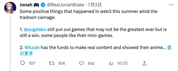 Game Fund Partners 合伙人 Jonah 为我们梳理了这些为数不多的积极动态,以下为其推文内容,由 Odaily 星球日报编译(仅做编译呈现,不代表本站观点)。