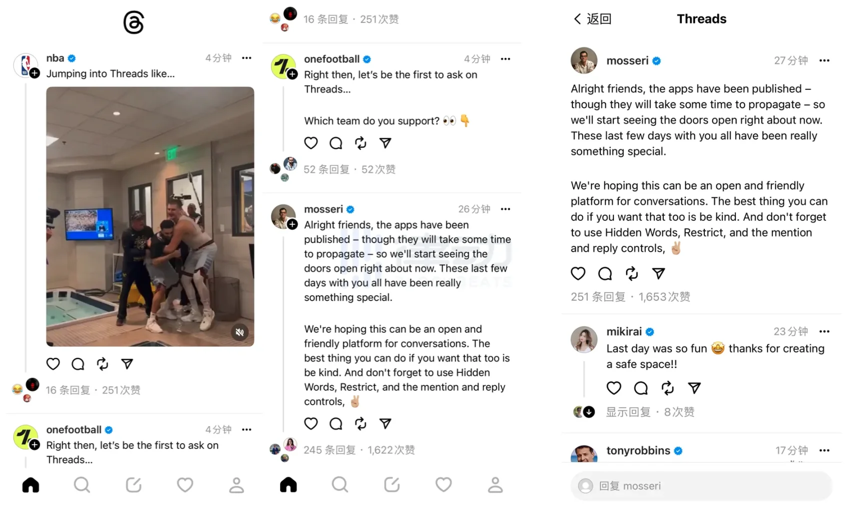 初步来看,Threads 的定位的确如此。至少就目前来说,它没有像 Twitter 那样限制用户阅读量。