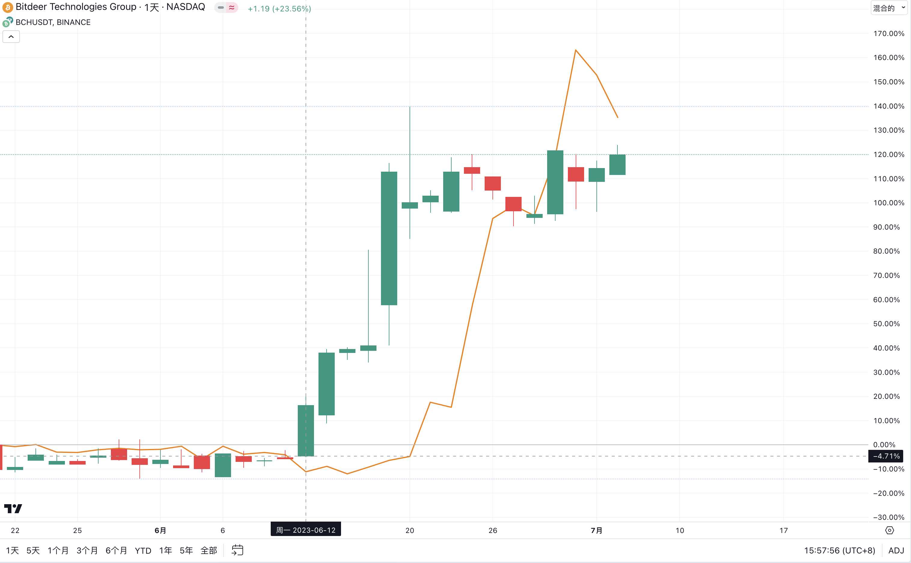注释:黄线部分为 BCH 价格涨幅情况