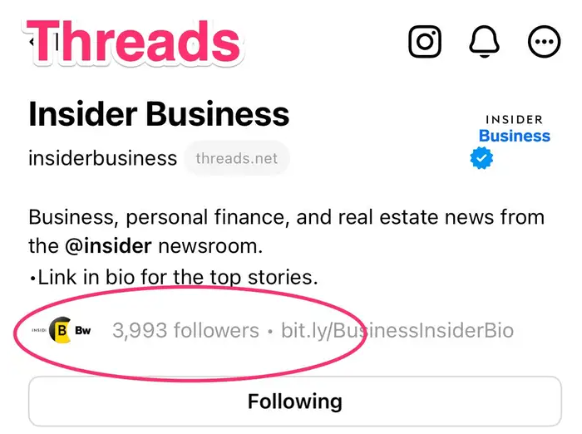 图 3 :Threads 上展示的关注者数量信息
