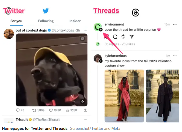 图 5 :Twitter 和 Threads 的主页对比