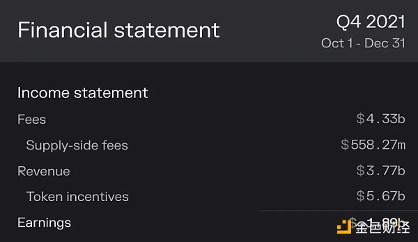 如下所示,在 2021 年第四季度,以太坊产生了 43 亿美元的手续费,但由于在切换到权益证明之前,大量的 ETH 被释放,这导致收益很大程度上为负。