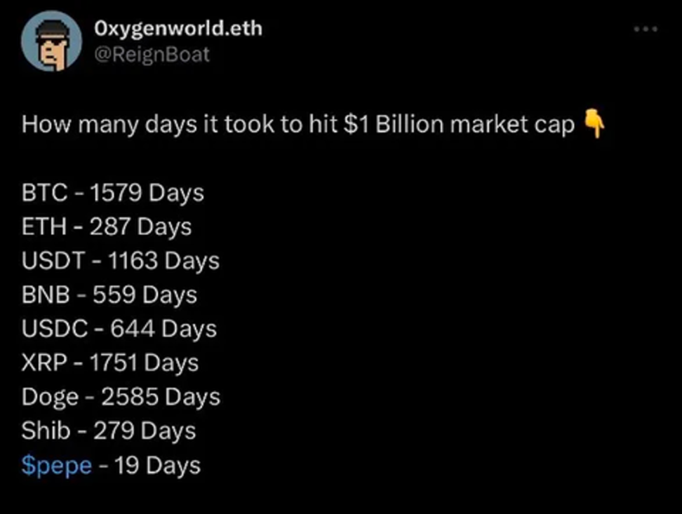 今年四月份横空出世的 $PEPE 以迅雷不及掩耳之姿,短短仅花了 19 天时间,便完成数十万倍的涨幅并上线币安,成为史上最快速到达市值 10 亿美金的代币,$PEPE 的出现也引爆了加密世界另一波 Memecoin Season 链上各种土狗代币疯涨、Gas Fee 飙升,每天都有涨了数十倍的新币出现,此风潮一直持续了将近两个月,直至六月底才趋近冷静。