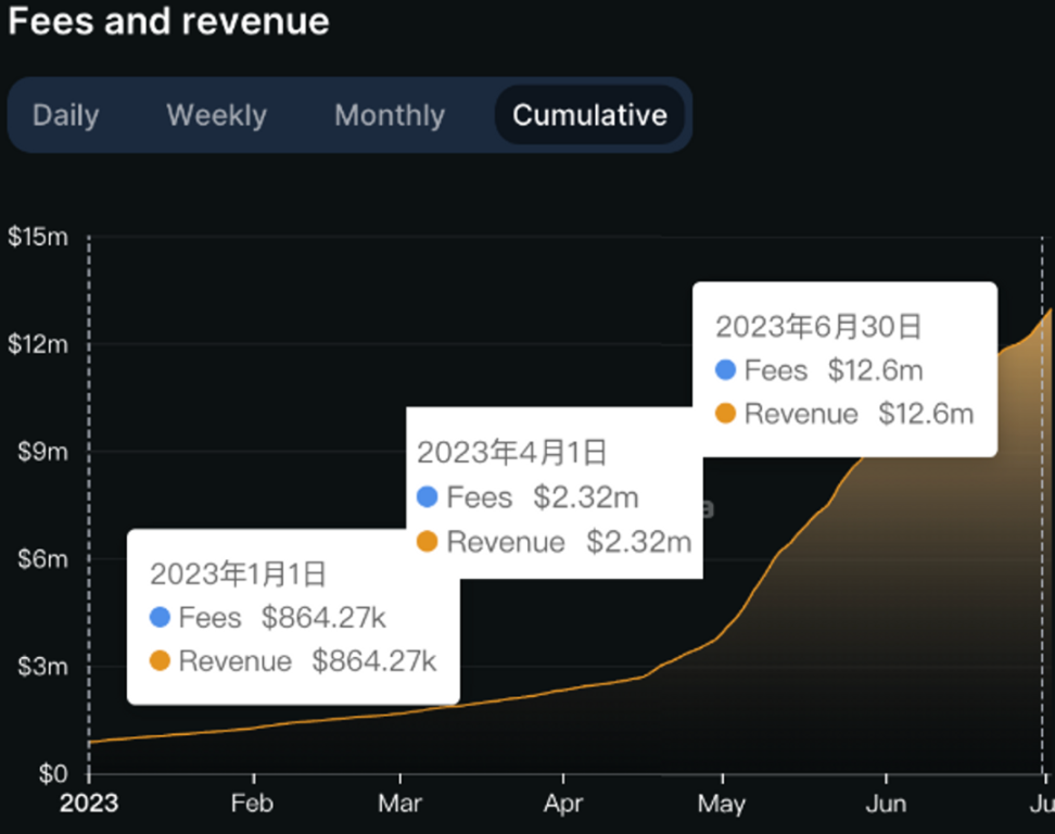 从 Defillama 的数据中可以得知,其 2023 年累计收入接近 12 M USD,近三个月 Memecoin Season 更是快速的入帐约 10 M USD,可以说是这一季度最会赚钱的项目方之一。