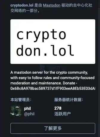 值得一提的是,以太坊基金会成员 boffin Phil Daian 在 Mastodon 上运营了一个名为 cryptodon.lol 的加密社区,Vitalik 也已加入其中。