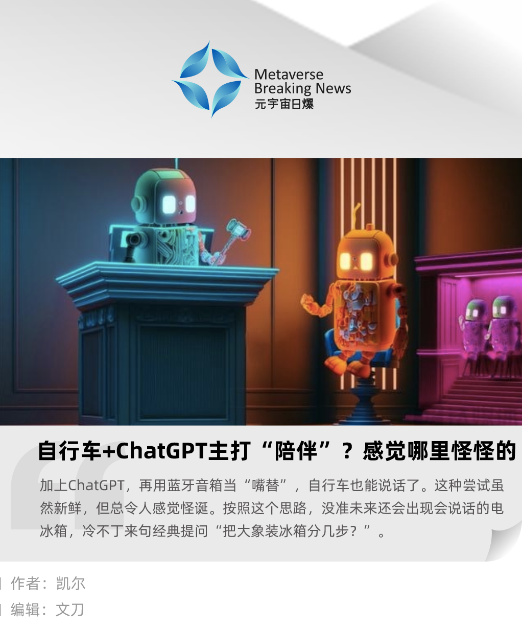 具备语音交互功能的汽车引入ChatGPT更像是向智能化的升级,没人觉得突兀。但自行车也上ChatGPT,画风瞬间奇怪起来。