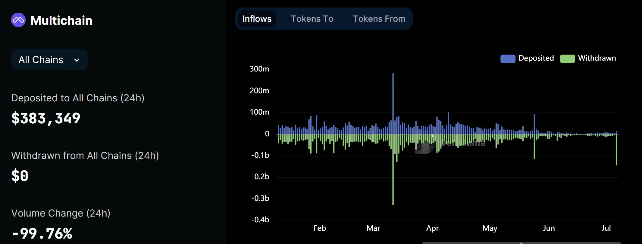 目前,事件的真相还需官方做出解答,Odaily星球日报查看 DefiLlama 上关于 Multichain 的 TVL 变化,发现 24 小时内已经有 99.76% 的资金撤出,说明用户针对此事件反应相对猛烈。