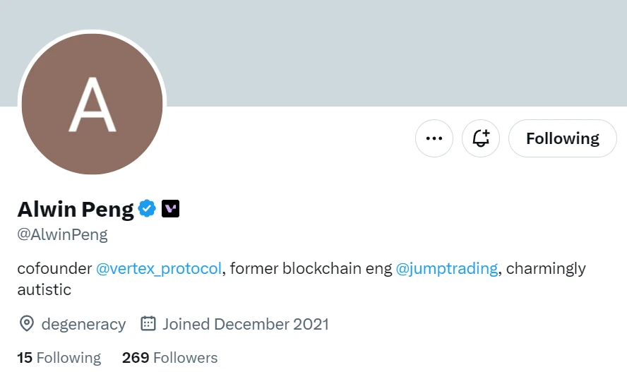 联合创始人 Alwin Peng,此前曾在 Jump trading 工作,为区块链工程师。