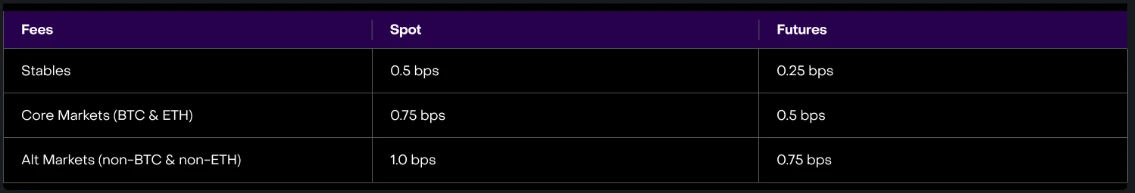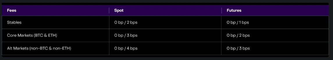 Vertex 的交易费用属于较低的水平。无论现货还是合约,maker 的费用目前均为 0 ,taker 的费用则为 0.01% -0.04% 。