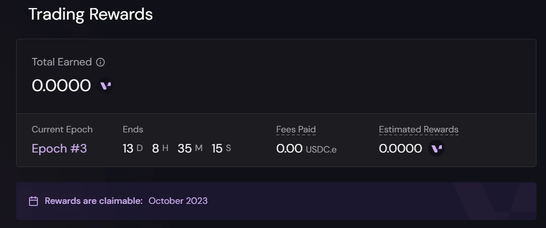 Initial token phase 部分代币用于发币前的交易激励,用户可在 Vertex 应用程序的 奖励页面 上追踪,官网明确相关激励在 2023 年 10 月份可以领取。