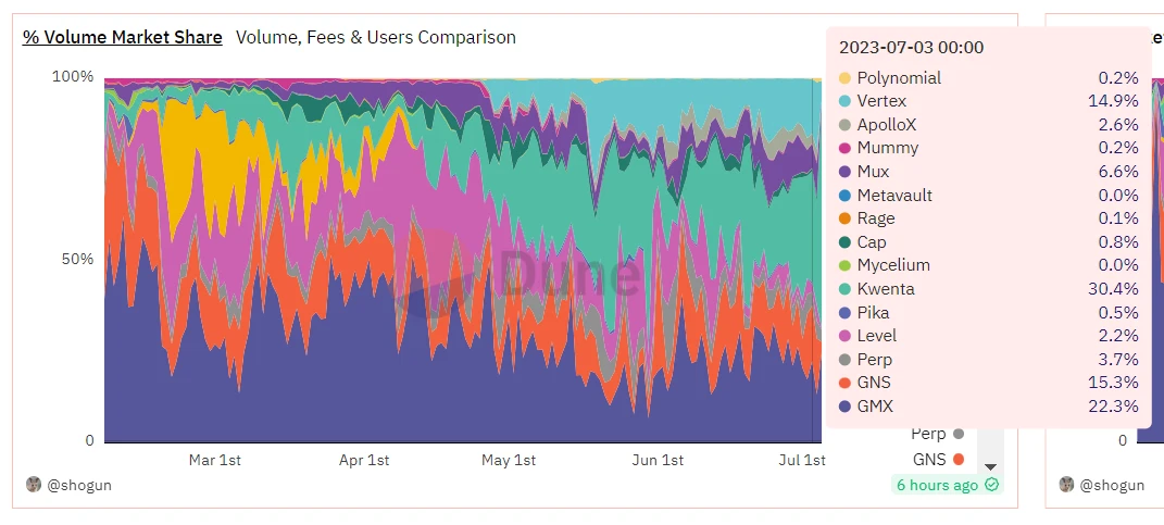 LD Capital:衍生品DEX新秀Vertex Protocol,日交易量市占率约10%