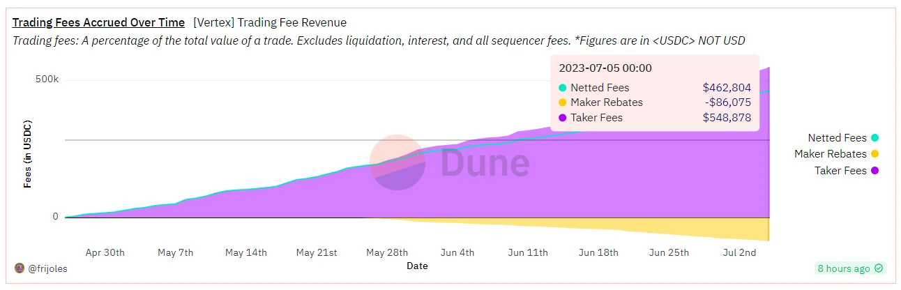Fee:累计毛收入约为 54 万美元,扣除给 maker 的返佣 8.6 万美元,净收入为 46 万美元。