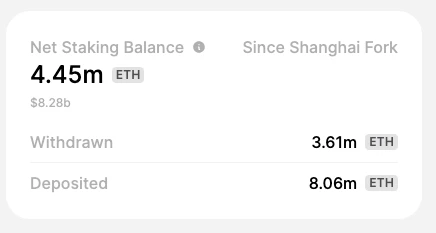 token.unlocks 显示,目前 ETH 全网质押总量 2101 万个 ETH,质押率 17.14% ;自上海升级以来,累计存款量 806 万 ETH,上周数据为 780 万,过去一周新增 26 万个;累计取出 361 万个,上周数据为 355 万个;总净质押量增加 445 万个,前周为数据 425 万个,过于一周增加 20 万个。