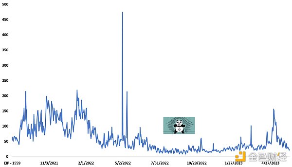 然而,与股票指数不同的是,VIX 本身无法交易。因此,只有以现金结算的 VIX 之上的衍生品才能进行交易。尽管如此,VIX 期货市场自 2004 年成立以来,已从日均交易量仅约 460 份合约增长到 2022 年的约 21 万份合约。这种市场结构类似于当前的天然气市场。底层天然气无法交易。但是以太坊区块空间市场有可观察和可量化的属性。因此,创建标准化的 Gas 参考价格对于期货/期权/掉期/ETP 的现金结算是必要的。幸运的是,在 EIP-1559 之后,这变得更加容易,EIP-1559 充当了区块空间的可靠预言机。