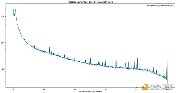 按区块中交易位置划分的提议者付款的 Gas 价格(以 wei 为单位)(有效 Gas 价格 - 基础 Gas 价格)