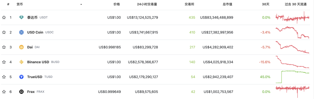 最后, 币安新扶持的 TUSD 则在 3 月中旬达到 20 亿美元大关后徘徊数月。